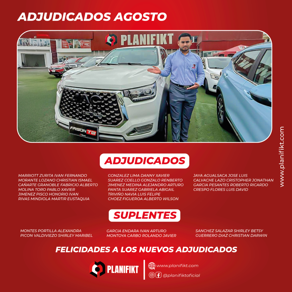 Todos los meses realizamos una asamblea, verificamos que nuestros clientes cumplan los requisitos y anunciamos los clientes adjudicados del mes.